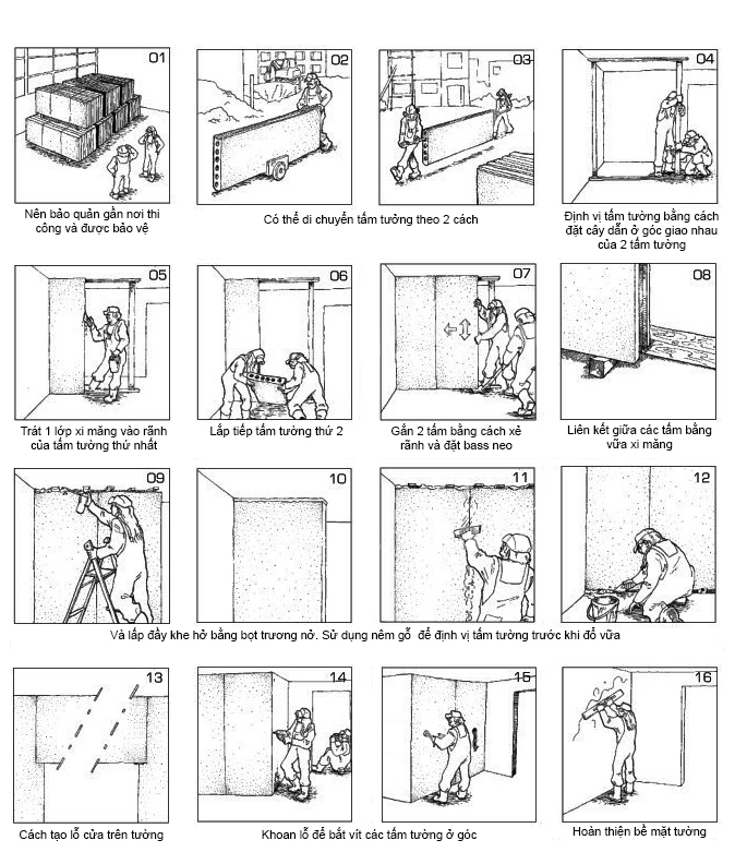 Tấm tường được đúc sẵn tại nhà máy, chỉ cần vận chuyển và lắp đặt tại công trình.