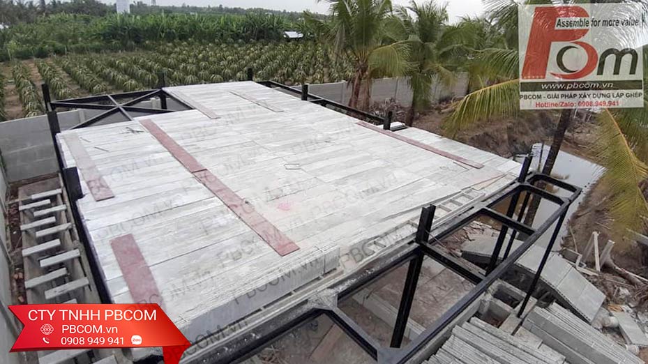 Độ dày: 55 mm – Chiều rộng: 300 mm. Phù hợp cho các công trình nhỏ, nhà dân dụng, mái che, ban công, hoặc sàn trung gian tải nhẹ. Trọng lượng nhẹ, dễ vận chuyển, cẩu lắp, tiết kiệm nhân công. Có thể kết hợp cùng dầm và cột HPF của PBCOM để tạo hệ khung đồng bộ.